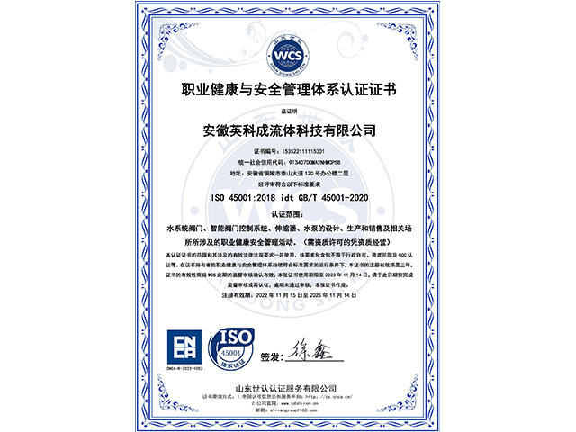 安徽英科成流體科技有限公司位于黃山腳下長江之濱的中國古銅都-安徽省銅陵市。公司注冊(cè)資金1.1億,是國內(nèi)一家專業(yè)致力于給排水行業(yè)系統(tǒng)解決方案、閥門以及智能閥門技術(shù)研發(fā)與生產(chǎn)銷售服務(wù)為一體的企業(yè)。 我們擁有完善的質(zhì)量控制體系和檢測(cè)設(shè)備,公司主要的產(chǎn)品有閘閥、蝶閥、偏心半球閥、液控蝶式止回閥、靜音止回閥、橡膠瓣止回閥、活塞式流量調(diào)節(jié)、錐型閥、節(jié)能型泵控閥、倒流防止器、減壓閥、排氣閥、排泥閥、伸縮器、閘門、啟閉機(jī)等二十多個(gè)系列,可以充分滿足客戶的一站式需求。……